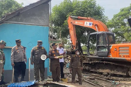 Ratusan bangunan liar di sempadan jalan dan bantaran sungai Kampung Pulo Timaha, Babelan, Kabupaten Bekasi, mulai dibongkar pada Rabu (9/7/2025).